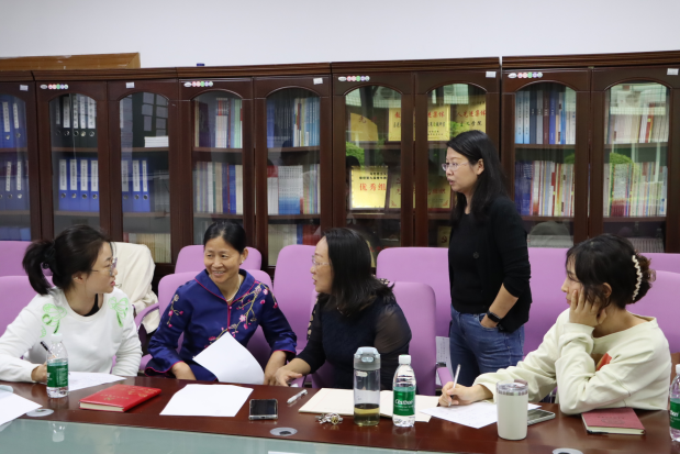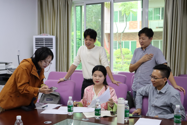 2025年10月21日下午,马克思主义学院在1121会议室举办“结构化研讨”教学沙龙活动,活动采取“讲解+体验+研讨”的形式,特邀党史进校园教学团队骨干教师陈惠扬博士为学院教师分享结构化研讨在思政课教学中的应用,并引导老师们分组参与体验。学院院长邹国振教授、党史进校园教学团队成员和多位学院教师共同参与。活动由副院长张春华教授主持。