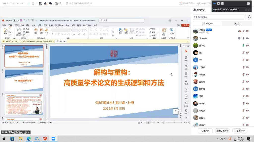 本次备课会特别邀请到《新闻爱好者》杂志副主编孙勇教授为课程教师作《解构与重构:高质量学术论文的生成逻辑和方法》报告。